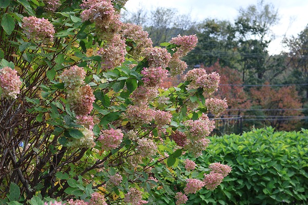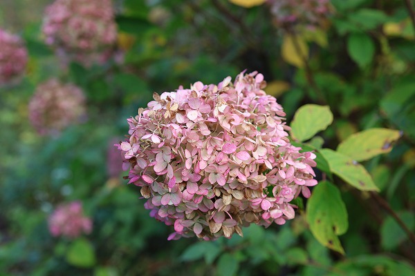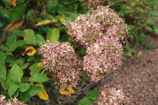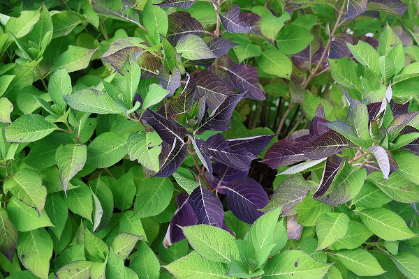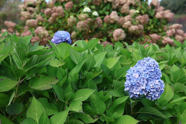アジサイ・エンドレスサマーも今頃、咲いてくるものがありました。 緑の葉の中に、シックに色付く葉を見つけました。