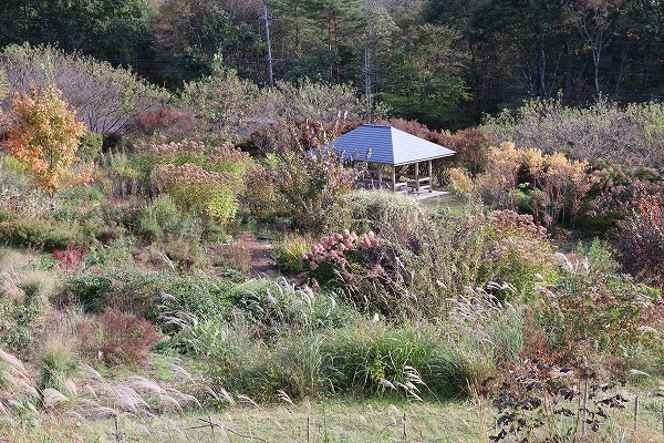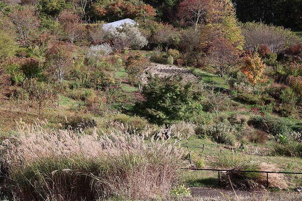 パーゴラへと続く道を登っていくと、ナチュラルガーデンを一望できます。