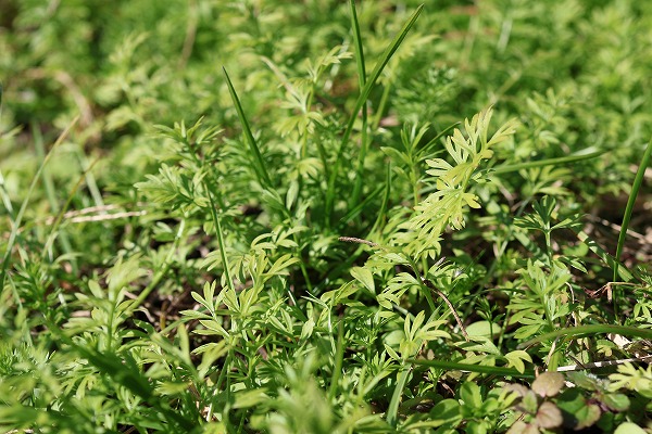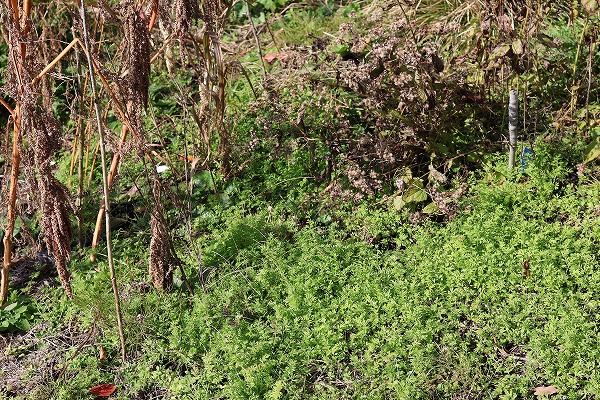 ニゲラのこぼれ種からの芽も大きくなっています。