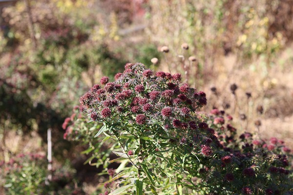 最後の彩りを加える宿根アスター・アンレイズの赤