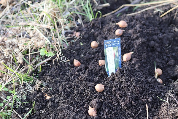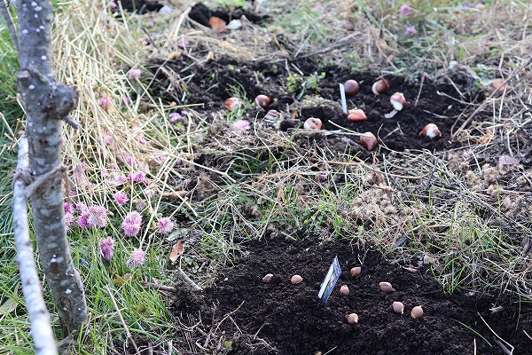 来年の春の彩りのお手伝いに、今年は球根を少し埋め込みました。