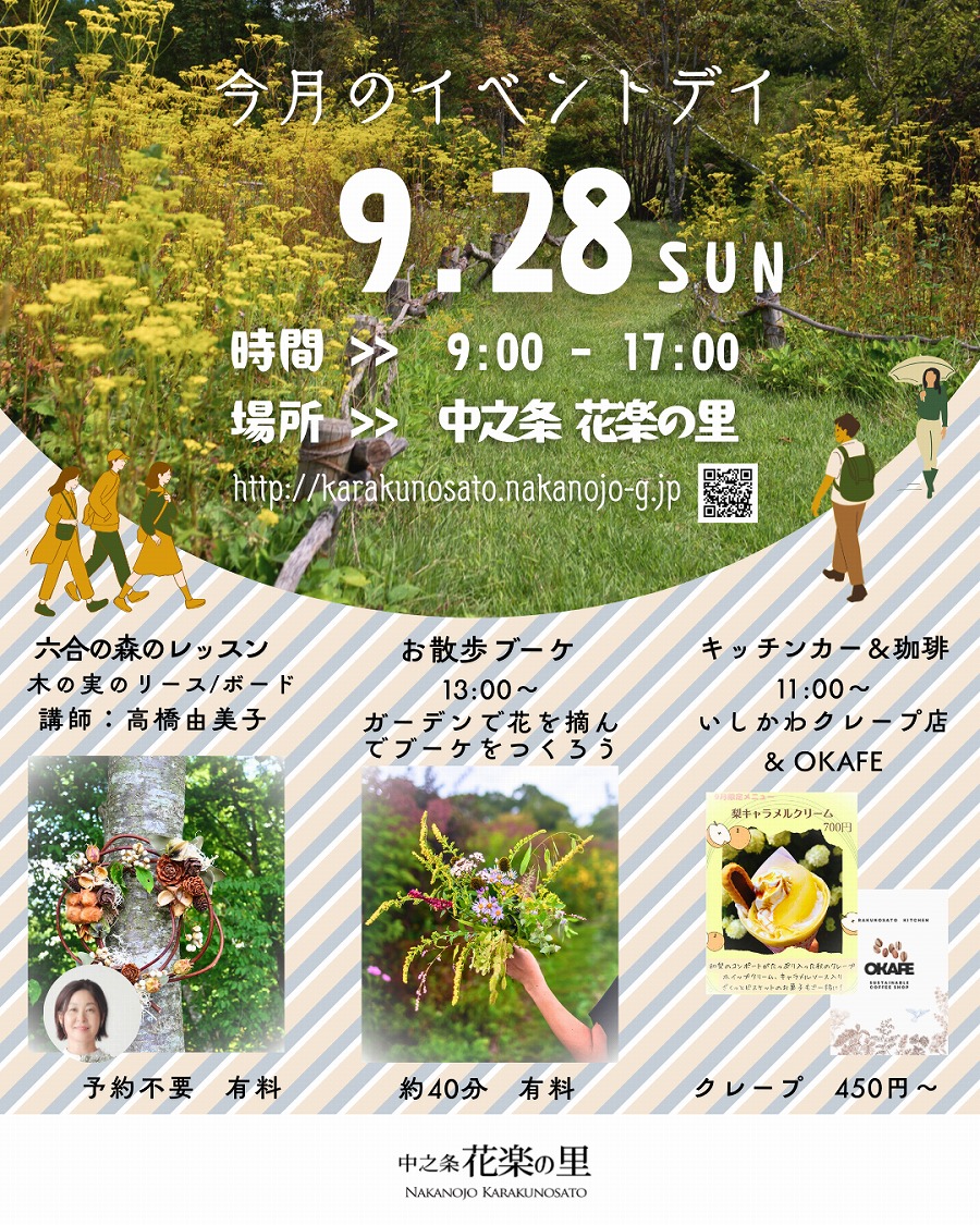 【イベント予告】9月のイベントディ 六合の森レッスン/花楽の里みどころガイド/お散歩ブーケ 他